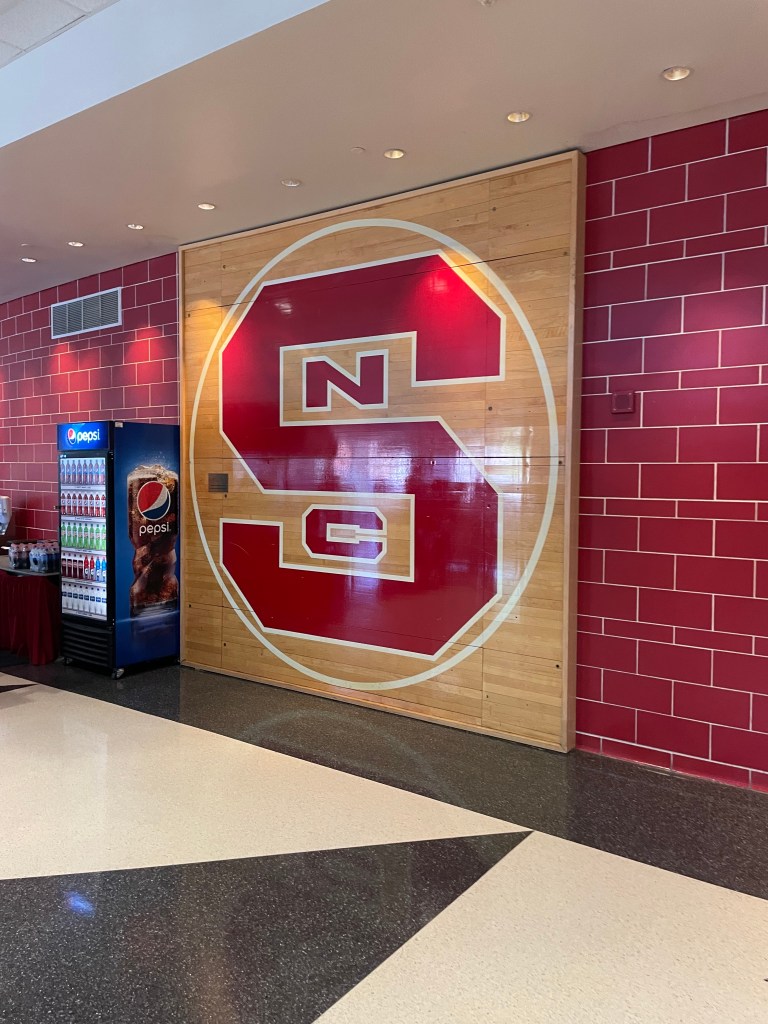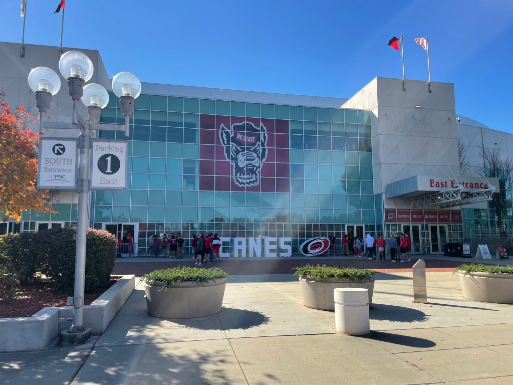 As had happened in the past, my perceived time of the game taken in the past from the NC Sate web site was an hour earlier than the actual game time (1PM vs. 2PM). Not sure if the time was changed or I messed up. So when I drive up to the PNC at about 12:30, the parking lots are almost empty. I did see some ushers gathering on the outside so I figured I was in the right place. The usher kindly informed me that the game time was 2PM so the gates will not open till 1PM. So what does one do after eating a heavy pasta lunch? You walk several times around the arena to kill time getting your steps in till the gates opened.