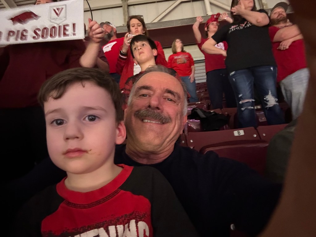 I had a great seat sitting in the second row right behind the ESPN announcers. The analyst was Pooh Richardson who I remember from his UCLA days. I took a picture of me on the TV monitor at the game and on on the replay when I got back home as you can see below.